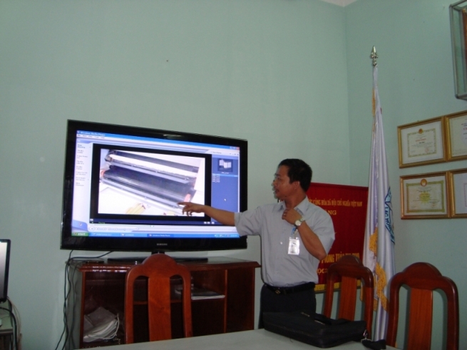 Ths. Phạm Xuân Vũ trình bày lại đoạn video quay được về hệ thống máy cần cải tiến của công ty ESQUEL