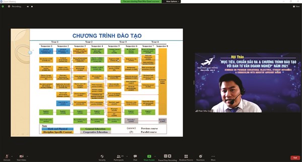 Hội thảo Trực tuyến đóng góp ý kiến Mục tiêu, Chuẩn đầu ra và chương trình đào tạo từ Ban tư vấn Doanh Nghiệp khoa Cơ điện - Điện tử năm 2021