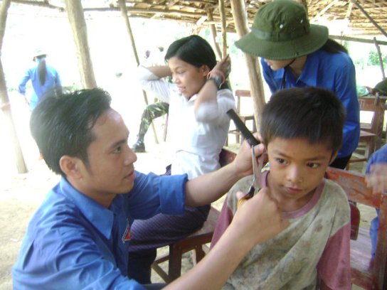 Ngày đầu tiên trong thôn, chúng tôi tìm hiểu cuộc sống và phong tục tập quán và sự khó khăn của dân tộc Vân Kiều. không để lỡ thời gian, chúng tôi lên kế hoạch hoạt động ngay sau khi ăn cơm. Chúng tôi đã tiến hành cắt tóc, cắt móng tay, móng chân và tắm cho trẻ em trong thôn. Nhìn những đứa trẻ mặt mũi nhơ nhuốc, đen nhẻm được gội rửa sạch sau khi được cắt và được tắm gội, chúng tôi cảm thấy rất vui. Trẻ em đến rất đông, phần lớn đã quen với sụ hiện diện của chúng tôi( tuy cũng có những đứa trẻ khóc ré lên khi chúng tôi đề nghị cắt tóc).