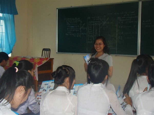 H02. Cô Võ Thị Hồng Gấm tham gia tư vấn trực tiếp cho các bạn hoc sinh tại lớp học.