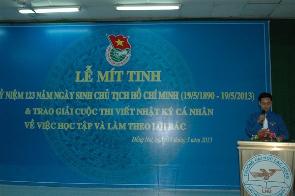 Sáng ngày 18 tháng 5 năm 2013, tại giảng đường A301. Đoàn trường ĐH Lạc Hồng đã tổ chức Lễ tổng kết và trao giải cuộc thi viết nhật ký cá nhân về việc “Học tập và làm theo tấm gương đạo đức Hồ Chí Minh” sau gần 3 tháng triển khai.