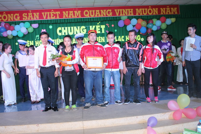 Hình 3: Đ/c Lê Sơn Quang - Bí thư Đoàn trường trao giải nhì thể loại song ca