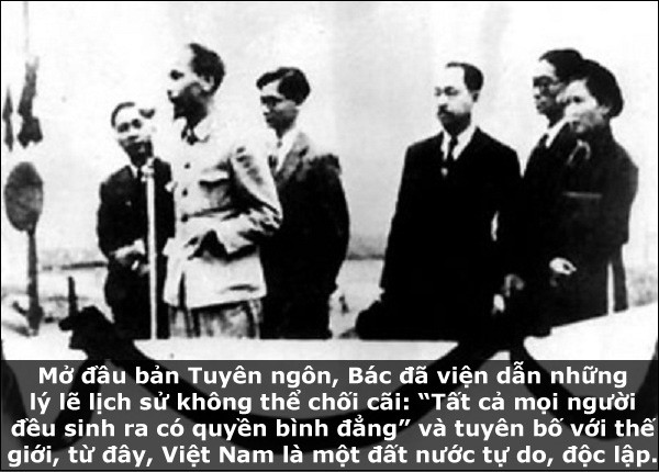 Ngày 02/9/1945, tại Quảng trường Ba Đình (Hà Nội) lịnh sử, trước cuộc mít tinh của gần một triệu đồng bào, Chủ tịch Hồ Chí Minh thay mặt Chính phủ Lâm thời trịnh trọng đọc bản Tuyên ngôn Độc lập, tuyên bố trước quốc dân và thế giới: Nước Việt Nam Dân chủ Cộng hòa ra đời (nay là Cộng hòa xã hội chủ nghĩa Việt Nam). Từ đó, ngày 02/9 là Ngày Quốc khánh của nước ta.