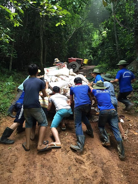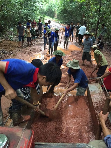 Sau nhiều ngày làm việc hết mình, con đường gồ gề, nhiều “ổ voi”, dốc lầy lội giờ đã được gia cố bằng sỏi, người dân và các bạn nhỏ có tể di chuyển một cách dễ dàng, thuận tiện. Nhớ lại những ngày đầu hành quân tiến hành sửa chữa đường bạn Nguyễn Thị Hiền chia sẻ - “ Chúng em thực hiện công tác sữa chữa đường này khi trong tay thiếu vật tư, dụng cụ, phương tiện vận chuyển. Nhưng các khó khăn đều được khắc phục rất nhanh chóng, nhóm quân có 12 bạn SVTN được chia làm 3 nhóm: Nhóm vật tư di chuyển xuống lòng hồ xúc sỏi đóng bao và may lại; nhóm vận chuyển đi kèm xe công nông liên tục vận chuyển những xe sỏi đến từng điểm lầy; nhóm gia cố phụ trách khai thông dòng nước đọng và tiến hành gia cố đường. Tuy mệt nhưng lại thấy vui và ý nghĩa lắm ạ