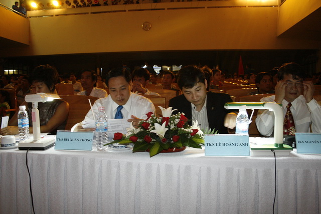 Hình 5: Th.s Nguyễn Hồ Xuân Hương (bìa phải) - Trưởng ban tổ chức cuộc thivà Đ/c Trần Tiến - Phó Bí thư Đoàn trường