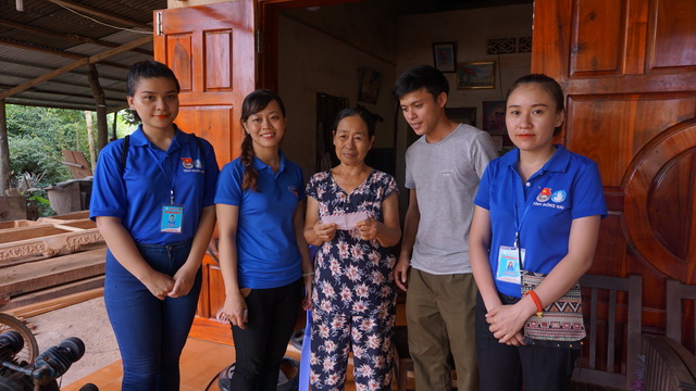 Hình 1: Đội TNTN Mùa hè xanh 2018 thăm hỏi và tặng quà cho các gia đình cách mạng