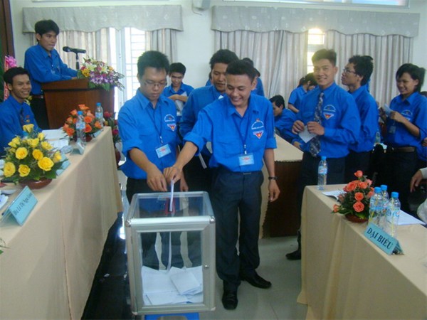 Sau phần chia tổ góp ý kiến về các nội dung trên, Đ/c Nguyễn Hồ Xuân Hương đã thay mặt Đoàn Chủ tịch trình bày dự thảo và lấy ý kiến của Đại biểu và biểu quyết của Đại hội về tiêu chuẩn, cơ cấu và số lượng Ban Chấp hành Đoàn trường nhiệm kỳ 2010 – 2012. Với sự tán thành của đại biểu trong Đại hội, Ban Chấp hành khóa IV đã trình bày trước Đại hội danh sách 23 đoàn viên ưu tú được giới thiệu tham gia Ban Chấp hành đoàn trường khóa V. Thay mặt Ban kiểm phiếu, Đ/c Phan Tôn Tẩn – Trưởng ban bầu cử đã thông qua thể lệ, nguyên tắc và hướng dẫn Đại hội tiến hành bỏ phiếu bầu.