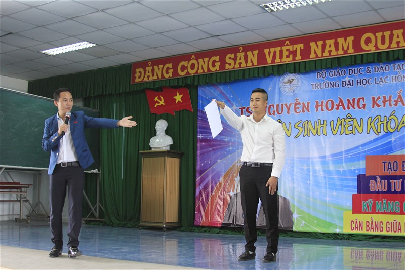Cuối tuần qua (23/10/2016), gần 1.000 tân sinh viên và sinh viên đang học tại Trường ĐH Lạc Hồng đã có buổi học và tương tác trực tiếp với diễn giả, tiến sĩ tâm lý Nguyễn Hoàng Khắc Hiếu. Chương trình do Trung tâm Đào tạo Kỹ năng mềm của nhà trường tổ chức.