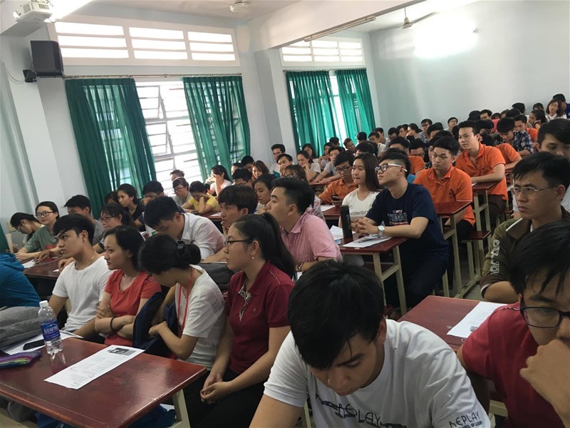 Sinh viên lắng nghe sự hướng dẫn của giảng viên khoa Anh văn đại cương