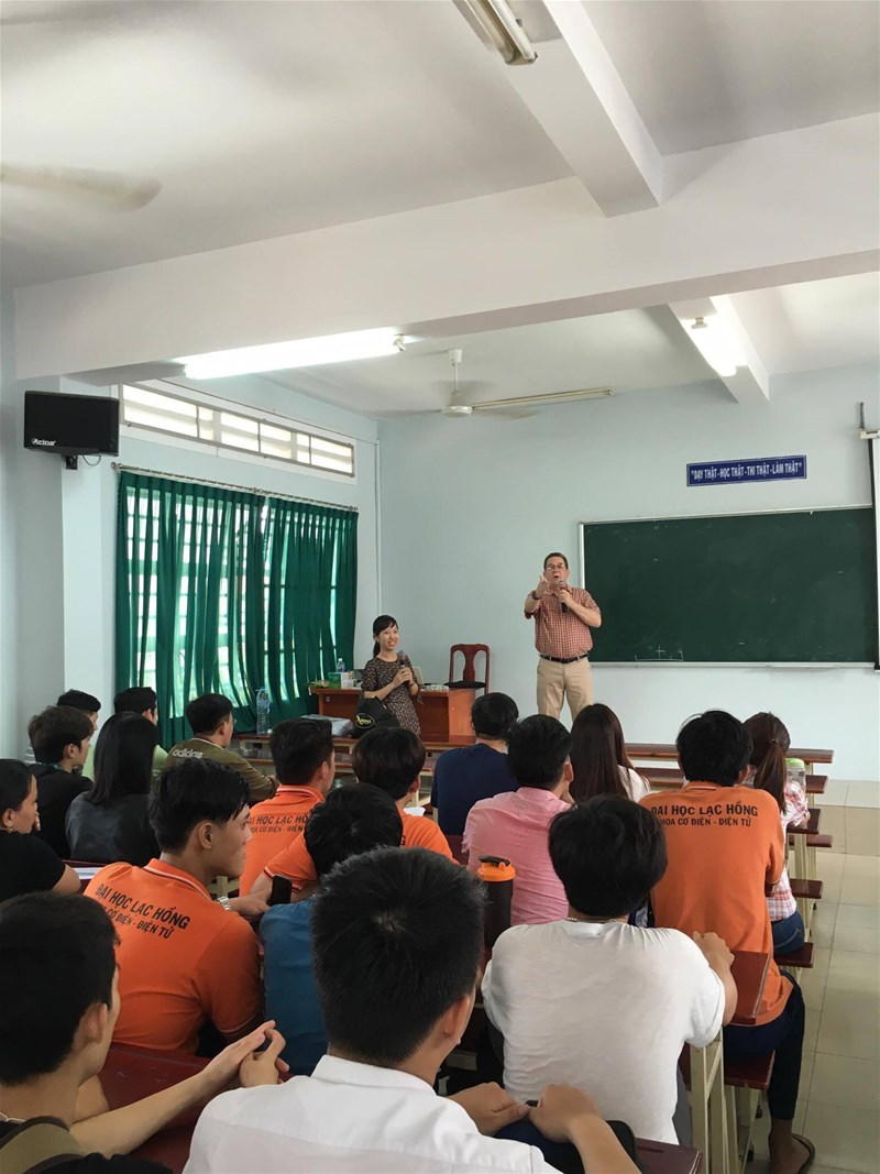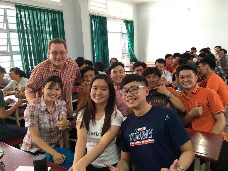 Sinh viên chụp hình lưu niệm với Thầy Vincent L Baehr