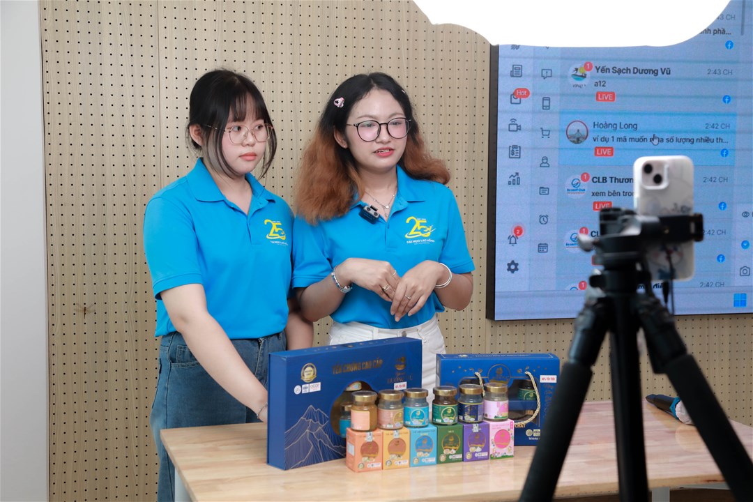 Sinh viên thực hành livestream thực tế cùng sản phẩm được tài trợ từ Doanh nghiệp