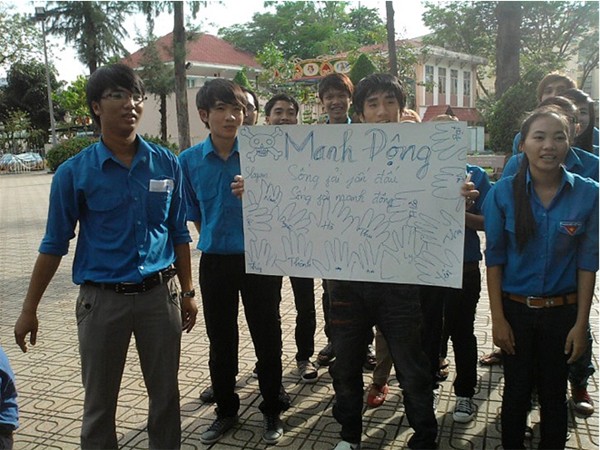 Hình 4- đồng chí Huỳnh Thúc Hiếu hướng dẫn các bạn cách thức tổ chức sinh hoạt vòng tròn