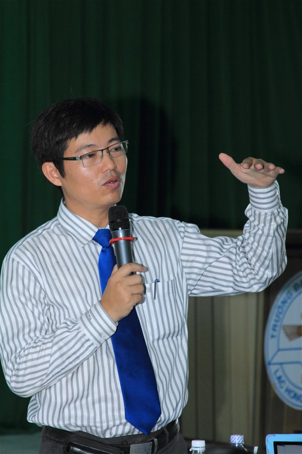 Mở đầu chương trình, TS. Nguyễn Văn Tân thay mặt Ban lãnh đạo Khoa giới thiệu với các bạn về cơ sở vật chất, đội ngũ giảng viên, nhân viên Khoa, các bậc học, ngành học, một số thành tựu nổi bật của Khoa trong thời gian vừa qua.