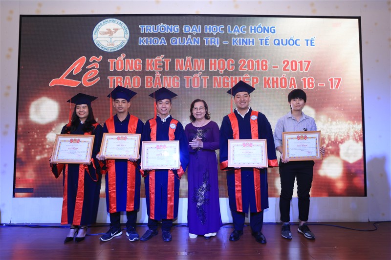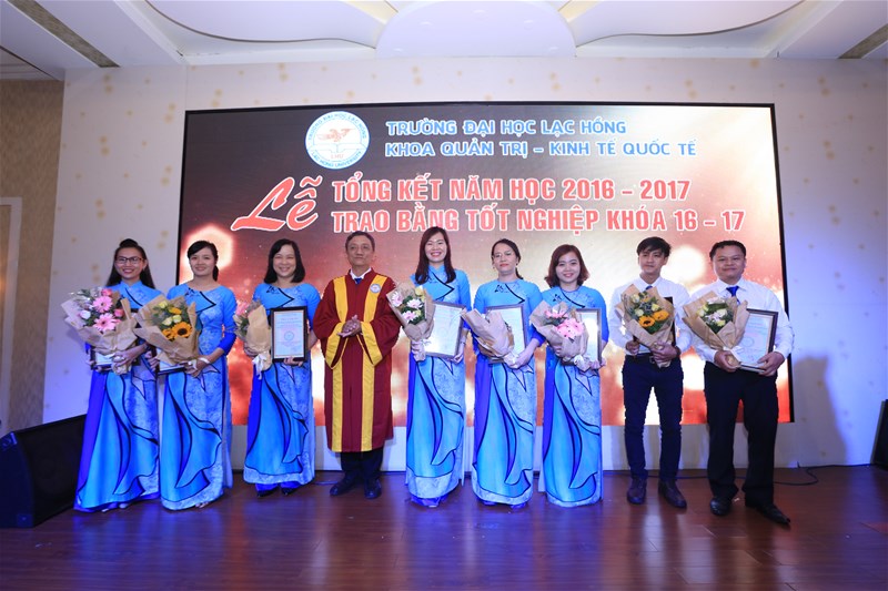Được sự cho phép của Hội Đồng Quản Trị, Ban Giám Hiệu nhà trường, chiều ngày 16 tháng 12 năm 2017, Khoa Quản trị - Kinh tế quốc tế - Trường Đại học Lạc Hồng đã long trọng tổ chức lễ tổng kết năm học 2016-2017 và phát bằng tốt nghiệp khóa XVI-XVII. Đây là dịp để thầy và trò trong toàn Khoa cùng nhìn lại một chặng đường đã qua với nhiều thành tựu đáng tự hào, đồng thời đề ra những bước phát triển mới và khen thưởng các thành quả học tập, phong trào Khởi nghiệp sinh viên, NCKH của Giảng viên, Sinh viên khoa Quản trị - Kinh tế quốc tế (QT-KTQT).