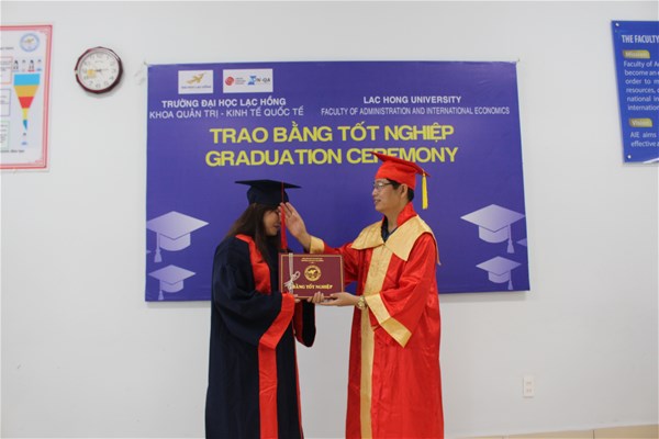 Như thường lệ, khoa sẽ tổ chức lễ tốt nghiệp. Tuy nhiên, do tình hình dịch COVID-19 còn phức tạp nên trường, khoa không thể tổ chức lễ tốt nghiệp trực tiếp cho sinh viên trong thời điểm này. Để đảm bảo sinh viên có thể nhận bằng tốt nghiệp đúng hạn. Khoa Quản Trị - Kinh Tế Quốc Tế, Trường Đại học Lạc Hồng, đã tổ chức trao trả bằng cho sinh viên tốt nghiệp, sinh viên nhận bằng tốt nghiệp tại trường sau khi hoàn thành các thủ tục, điều kiện tốt nghiệp của trường.
