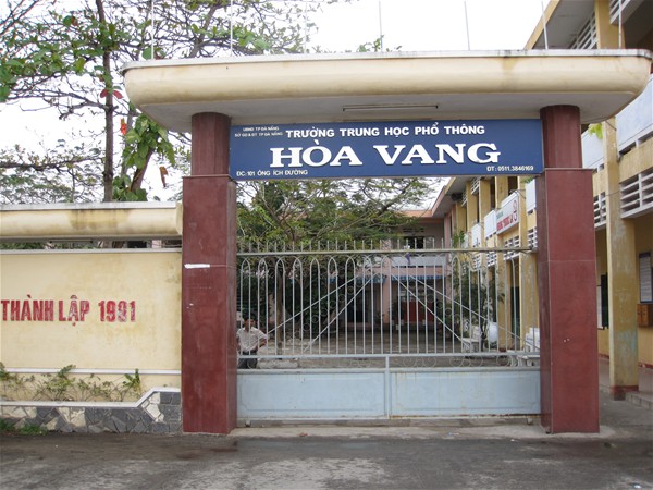 Băng rôn của trường treo tại trường THPT Hòa Vang