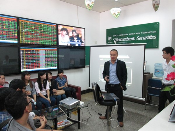 Tại buổi tham quan kiến tập, các bạn sinh viên đã được Ông Nguyễn Bá Dương Giám Đốc Công ty Chứng khoán Vietcombank - Chi nhánh Đồng Nai chia sẻ những kinh nghiệm làm việc và kinh nghiệm trong quá trình xin việc nhằm giúp cho các bạn sinh viên có thêm được những kiến thức rất bổ ích cho mình khi các bạn tốt nghiệp sau này. Ngoài ra, các bạn còn được Bà Nguyễn Thị Quỳnh Thơ chuyên viên môi giới chứng khoán hướng dẫn những kiến thức thực tế trên sàn giao dịch chứng khoán, giúp cho các bạn làm quen thực tế với các công cụ chứng khoán, các công việc của nhân viên trên sàn gian dịch chứng khoán.