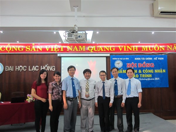 - Chiều ngày 31 tháng 10 năm 2014, tại phòng B203 cơ sở 1 trường Đại học Lạc Hồng khoa Tài chính - Kế toán tổ chức buổi thẩm định giáo trình chuyên ngành tài chính lần 2. Tham gia buổi thẩm định giáo trình lần này gồm: