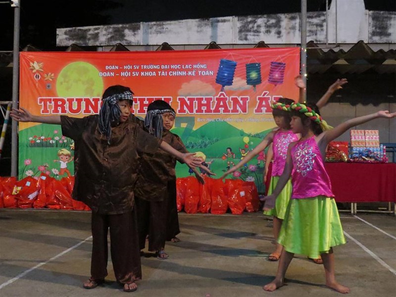 Ngoài một số tiết mục văn nghệ, các bạn sinh viên của Khoa TCKT đã hóa thân thành Chị Hằng Nga, chú Cuội, cây Đa để diễn kịch đồng thời giao lưu, trò chuyện cùng các em.