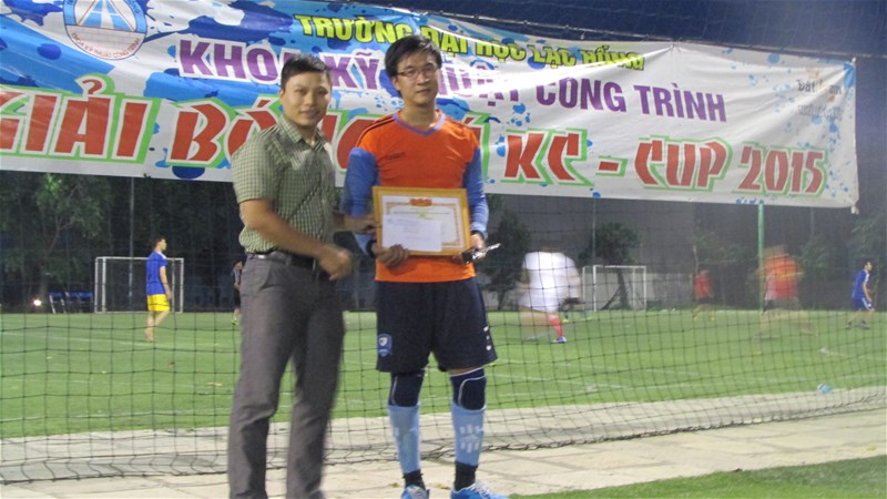 Đ/c Nguyễn Đinh Anh Vũ Phó BT Đoàn Khoa - Trao giấy khen cho thủ môn xuất sắc nhất giải