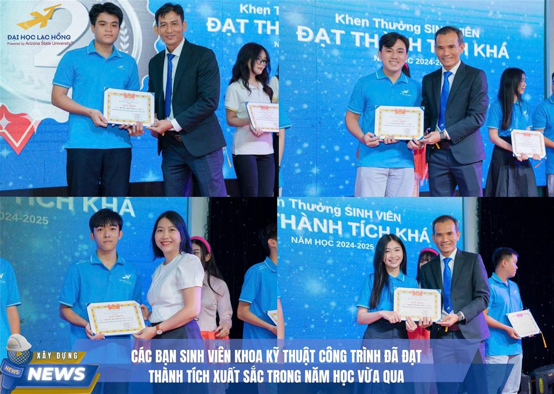 Khoa Kỹ thuật Công trình – Trường Đại học Lạc Hồng trân trọng chúc mừng các bạn sinh viên đã đạt thành tích cao trong năm học 2024 – 2025. Đây là minh chứng cho quá trình nỗ lực không ngừng, tinh thần học tập nghiêm túc và lòng yêu nghề của các thế hệ sinh viên Khoa Kỹ thuật Công trình.