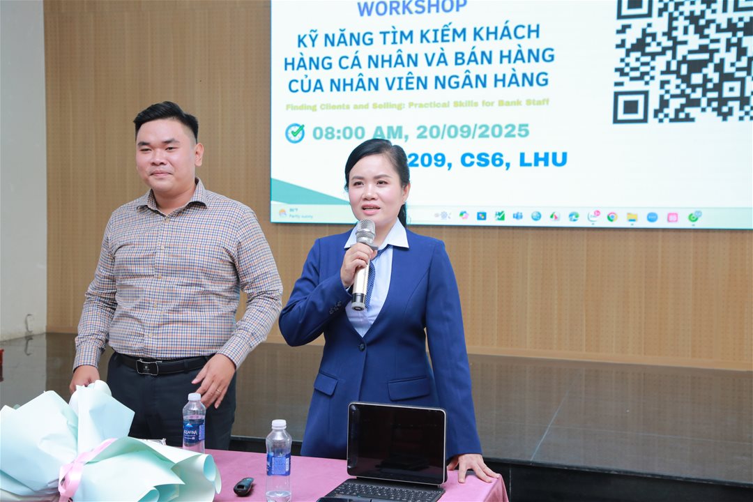 In order to strengthen the linkage between theoretical training and practical application, while equipping Finance and Banking students with essential skills for their future careers, the Faculty of Finance and Accounting at Lac Hong University organized the workshop entitled “Skills in Identifying Individual Clients and Selling for Bank Staff.” The event took place at 8:00 a.m. on September 20, 2025, in Room I209, Campus 6, Lac Hong University.
