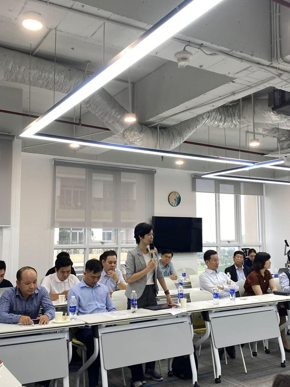 Ms. Van Dinh Vy Phuong, head of the Faculty of IT, speaks and shares at the exchange.
