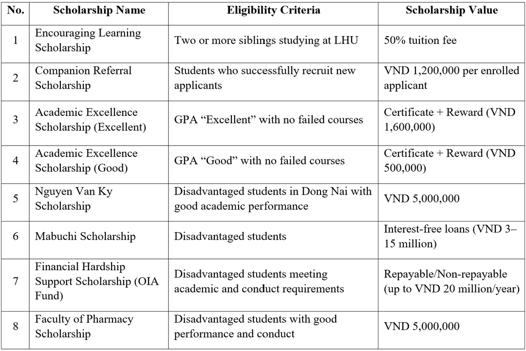 Students who have a high school diploma and equivalent can apply for admission to the Faculty of Pharmacy of LHU through one of these following methods: